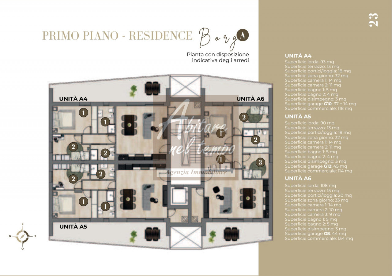 • Unità disponibili: appartamenti tricamere e bicamere al piano terra, primo e attici al secondo e ultimo piano.